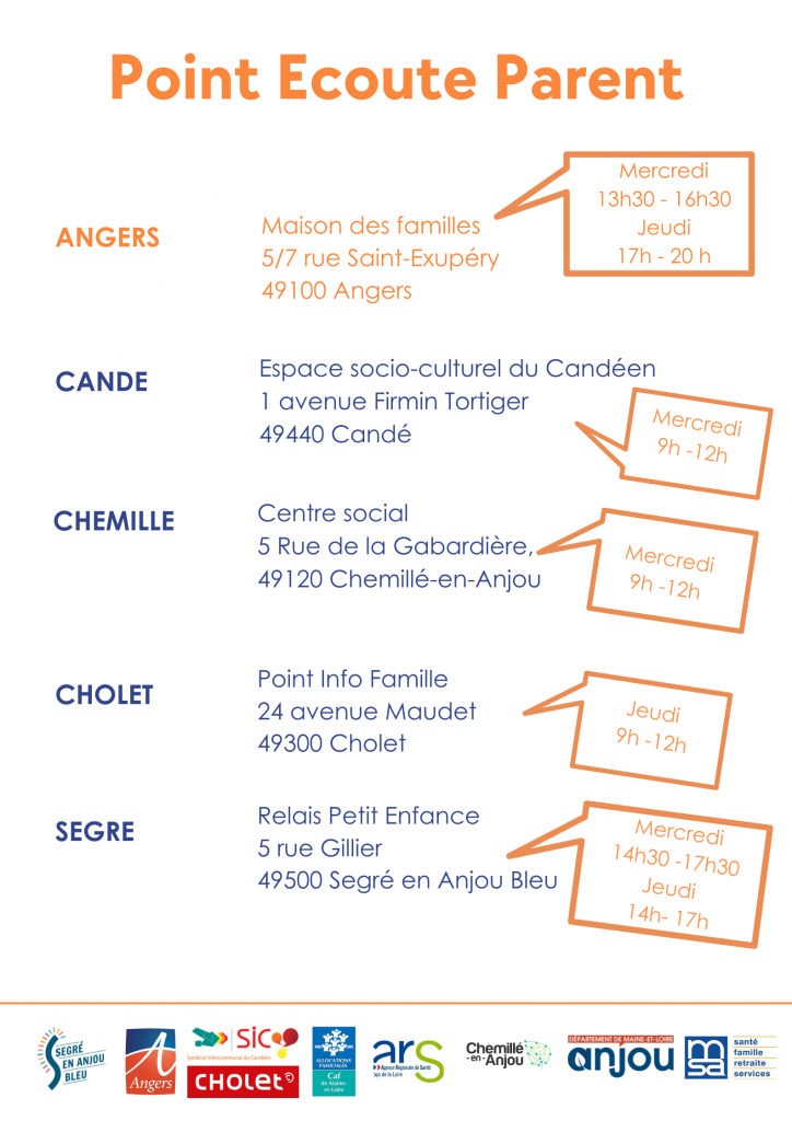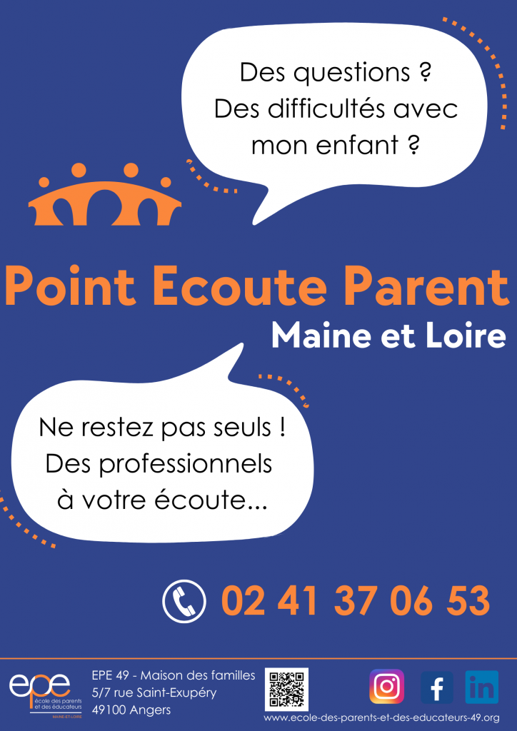 Qu’il s’agisse de soucis quotidiens, de la relation dans la fratrie, de la scolarité avec un enfant ou un ado, parler avec un tiers permet d’aborder la situation autrement et de se sentir écouté. Appeler au 02 41 37 06 53