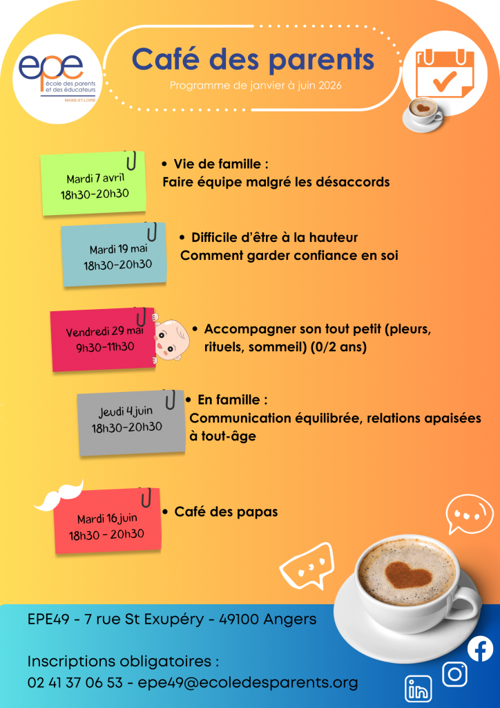 Un temps d’échanges autour d’un café destiné aux parents désirant réfléchir à leur mission éducative. Plus d’infos
